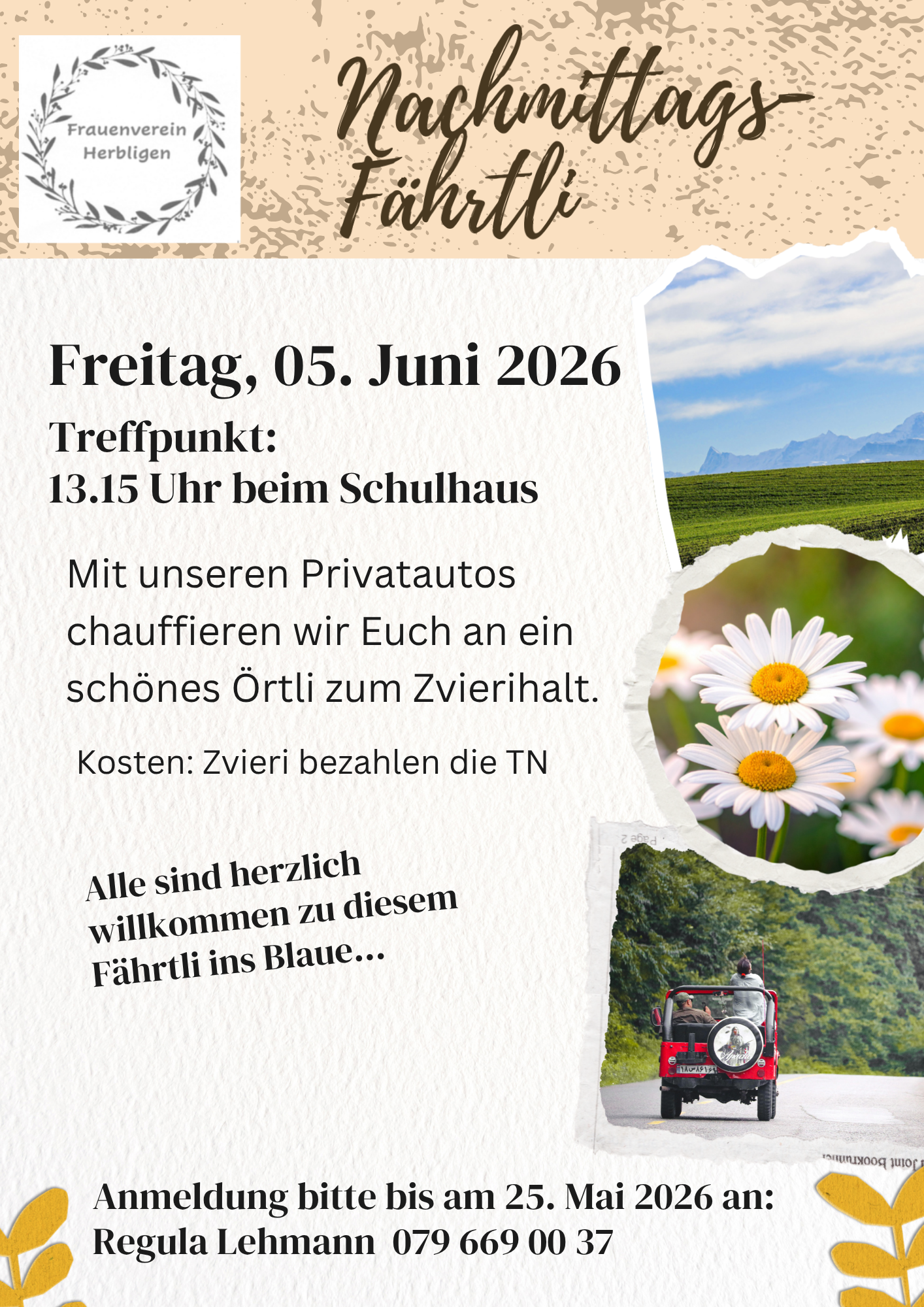 Frauenverein Herbligen; Nachmittags-Fährtli mit Zvierihalt, 05.06.2026